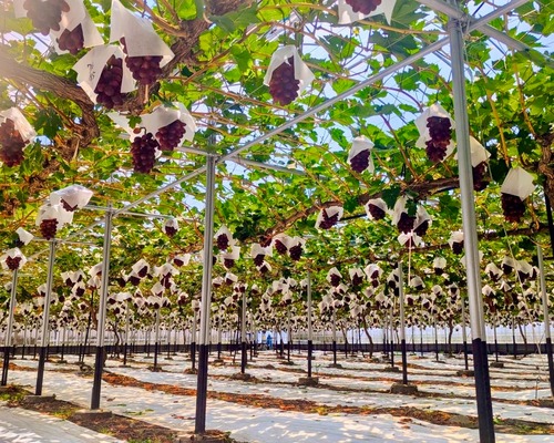 美味しまね認証を取得しました。 美味しまね認証は、産品が県の定めたGAP(農業生産工程管理)基準に基づき、生産されていることを認証する、県のGAP認証制度です。T's famの神紅は、安全な生産に取り組んでいることを県が認証した農園で栽培しています。