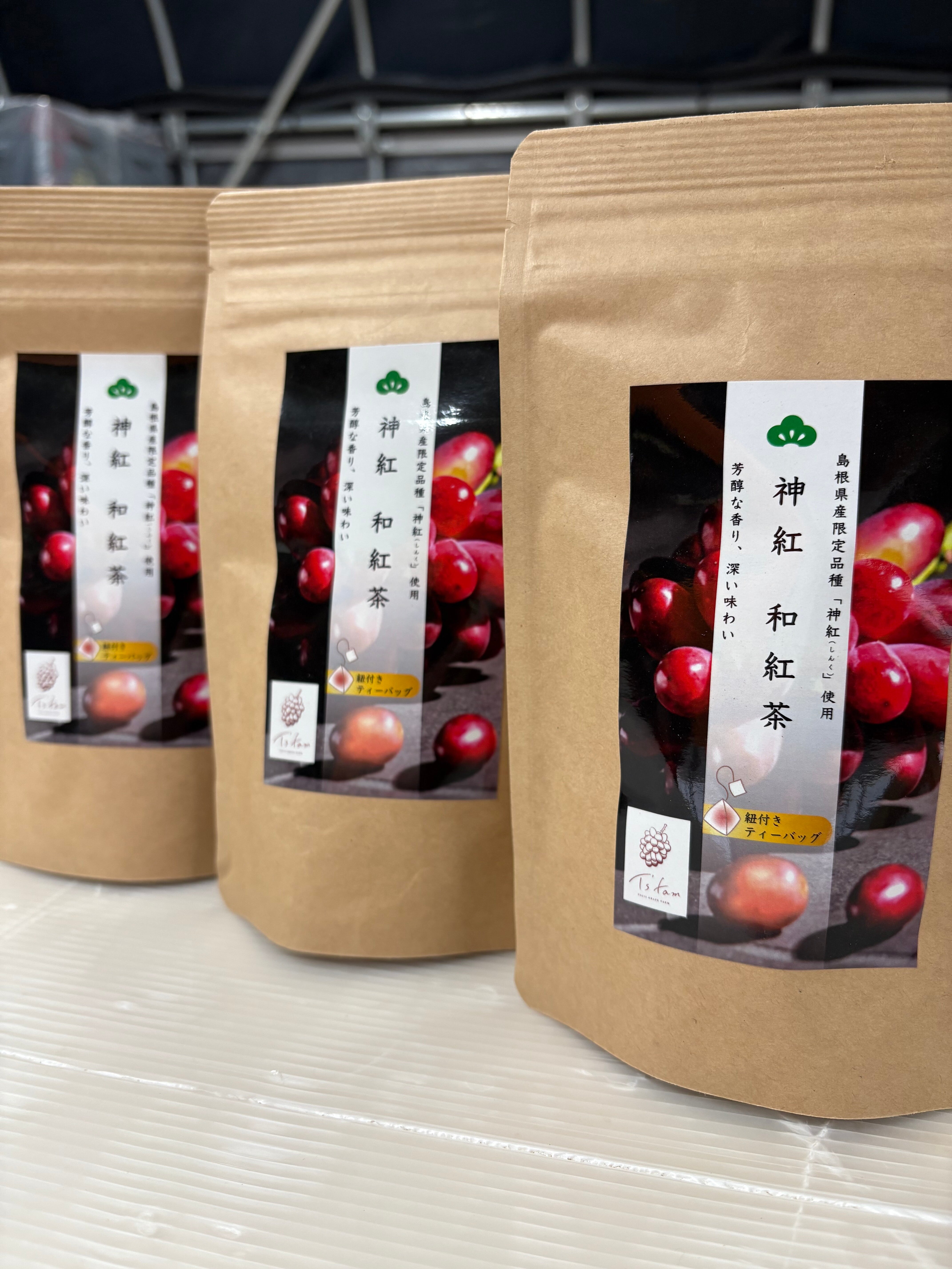老舗お茶メーカー様と神紅がコラボ致しました。1袋当たりティーバック8個入です。芳醇なぶどうの香りをお楽しみください。